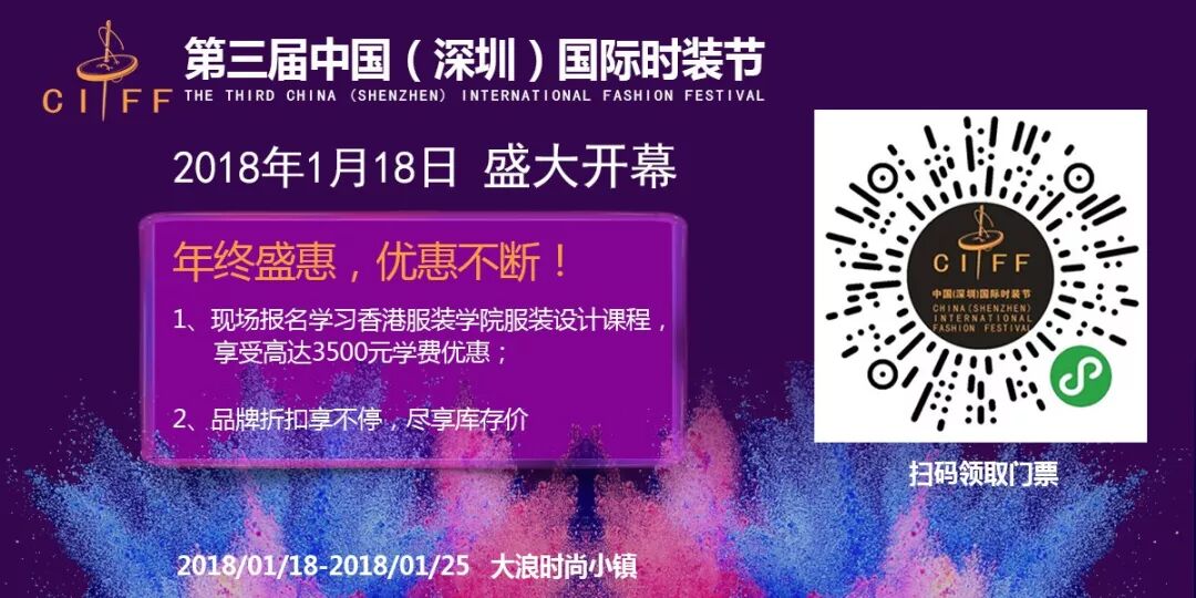 或者关注“深圳国际时装节”公众号,点击菜单栏“报名通道-时装节门票申请”领取门票)