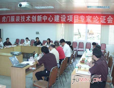 富民时装网讯 7月4日,虎门服装技术创新中心建设项目专家论证会在虎门镇人民政府会议厅举行,由东莞市虎门富民服务公司承担的虎门服装技术创新中心建设项目顺利通过专家论证。广东省科技厅、东莞市科技局及虎门镇人民政府的相关领导出席了会议,由广东省服装服饰行业协会副会长汤敏仪担纲组长的专家论证组对此项目进行了严格评审。